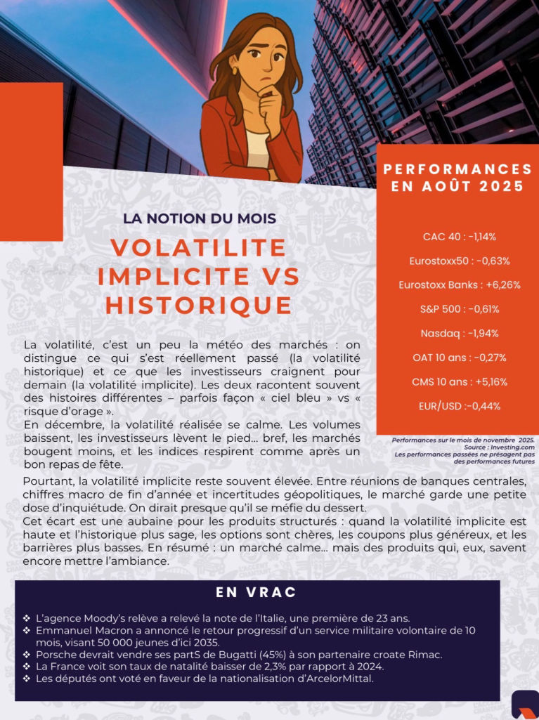 - Capital garanti : peu importe la hauteur de la flamme, vous récupérez 100 % du capital. (Mais les coupons restent conditionnels, évidemment.)